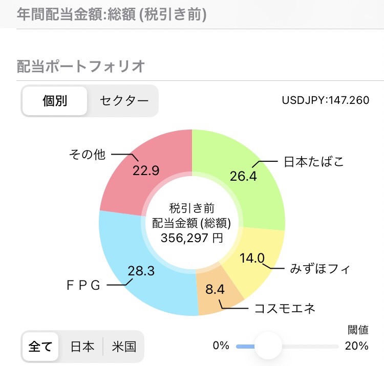 今の年間配当金は 年356,297円(税抜き前)です